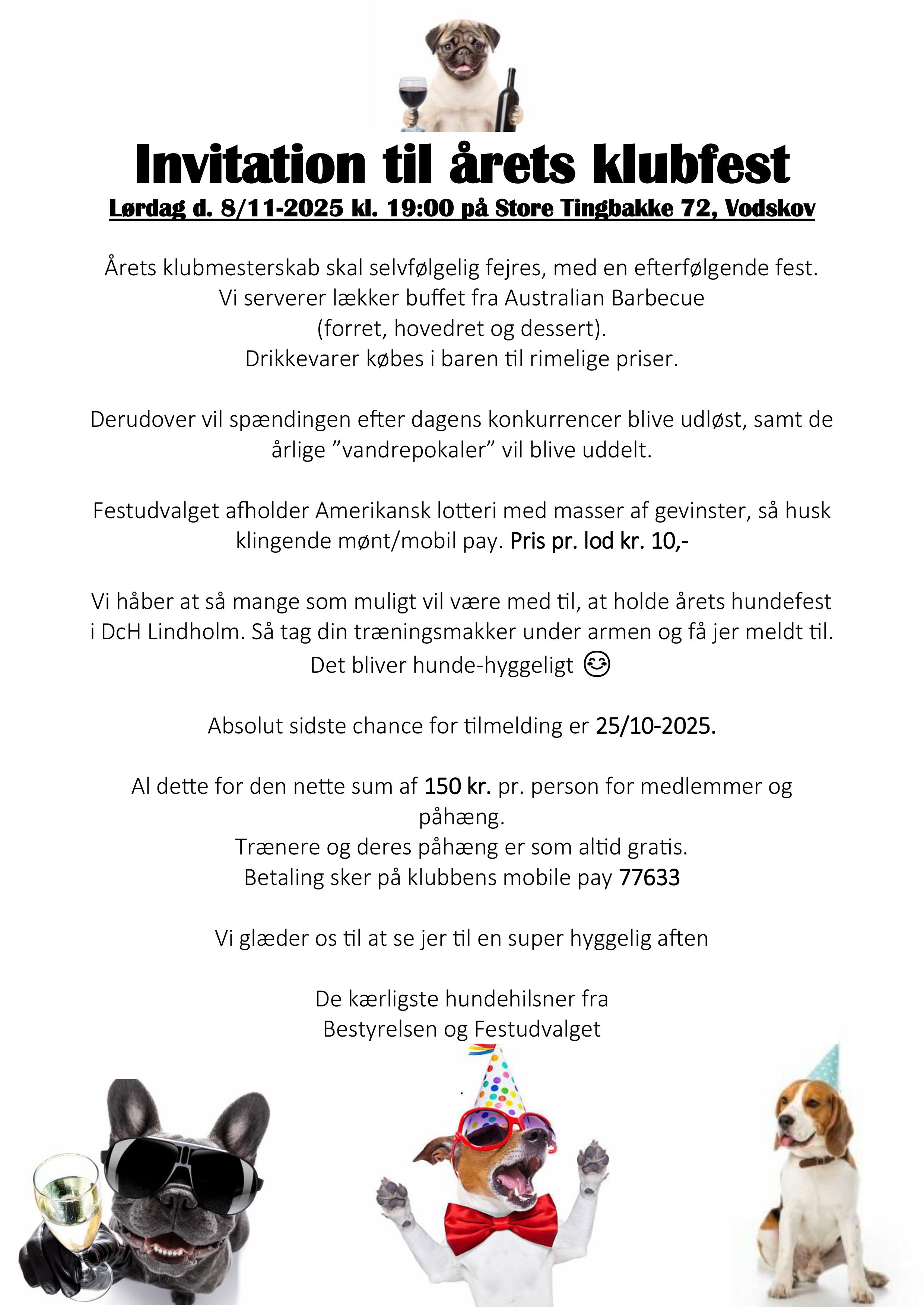 Klubfest 2025 - DET BLIVER HUNDEHYGGELIGT! KOM FRISK :-)